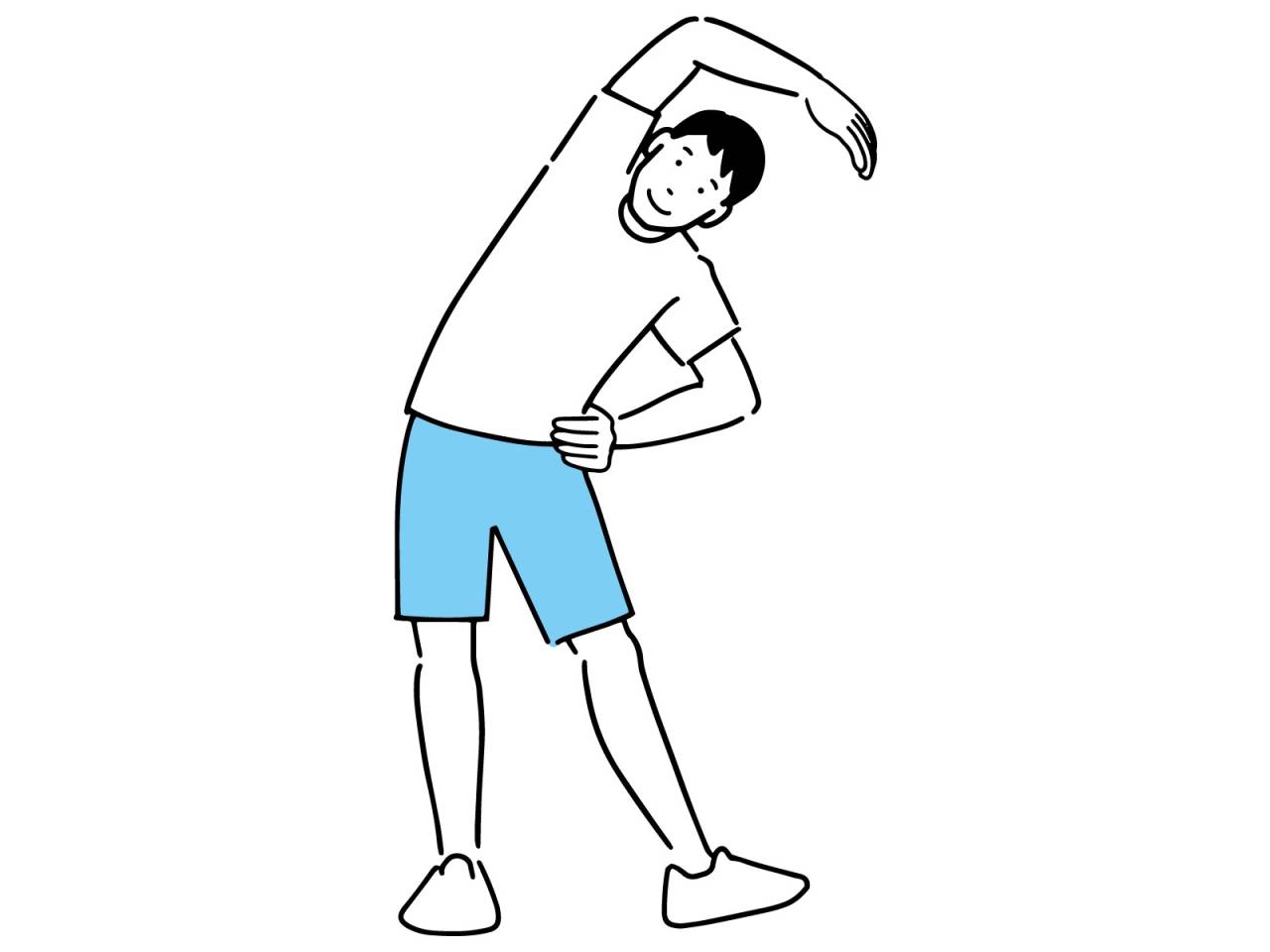 また先ほどの状態で身体を横に倒したり、写真のように身体の横を伸ばしたりすると